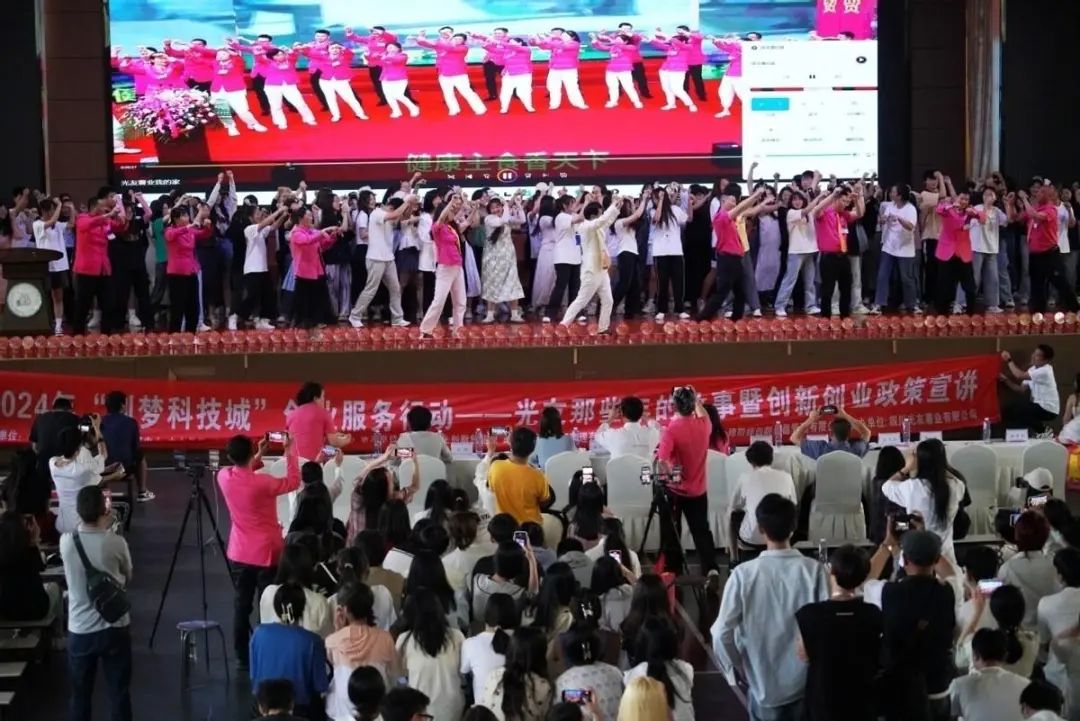 (方便粉絲方便米粉發(fā)明人鄒光友高校巡回演講現場(chǎng)共跳粉絲舞)
